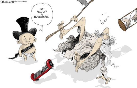 وتناول موقع “يو إس نيوز” الأميركي هذا الرسم من رحيل عام مضى وبداية عام جديد: