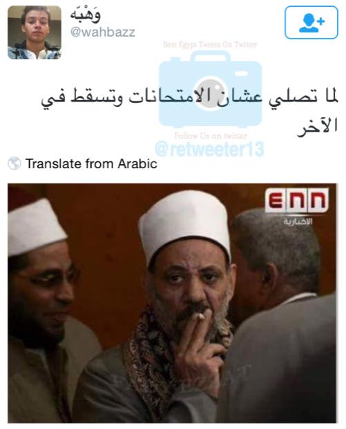 ونشر “وهبة” معلقا: “لما تصلي عشان الامتحانات وتسقط في الآخر”.