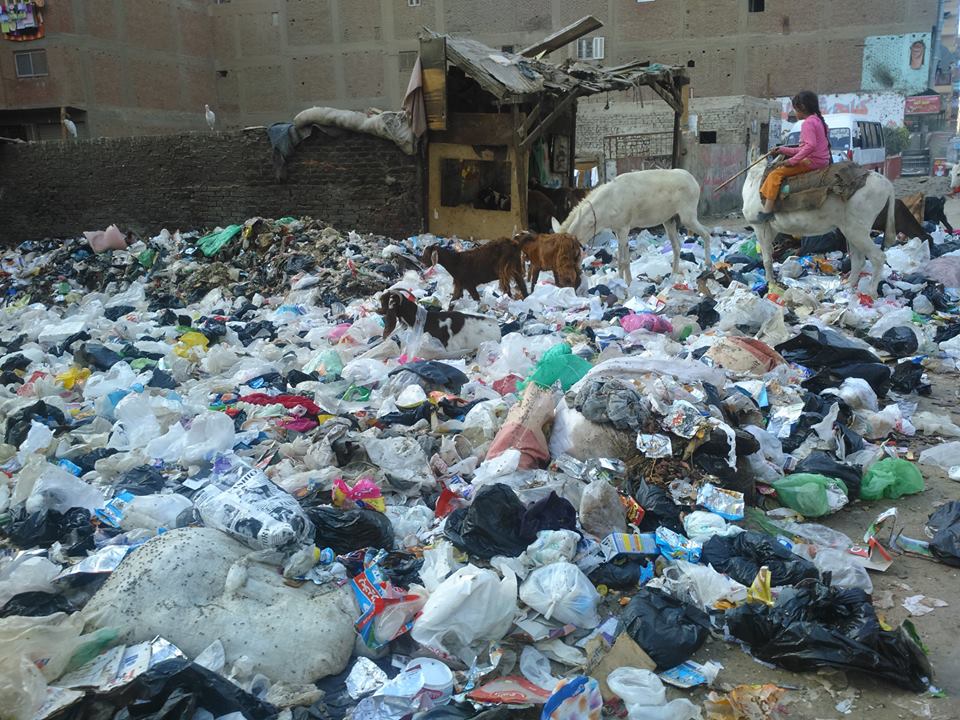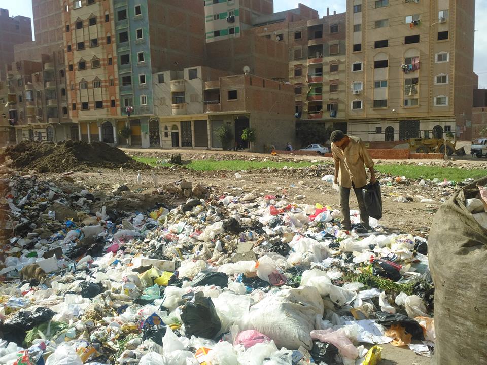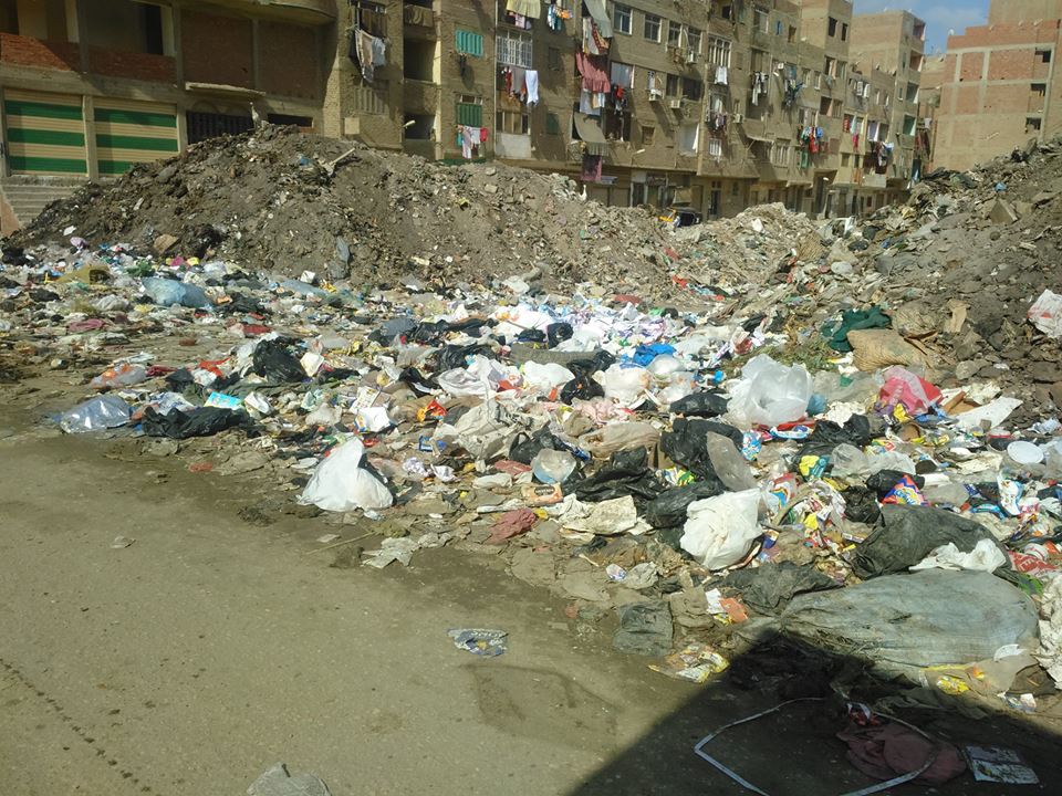 ما زالت تلال القمامة تسبب أزمة في أغلب مناطق الجيزة؛ حيث يشتكي أهالي المدينة من انتشارها في الشوارع وعلى أبواب المدارس وعلى قضبان السكة الحديد، وخاصة في مناطق إمبابة وبشتيل ومطار إمبابة وأرض اللواء وبولاق الدكرور.
