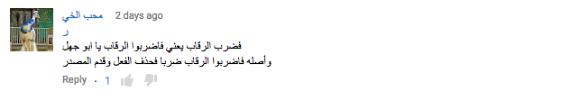 – “محب الخير”: “فضرب الرقاب يعني فاضربوا الرقاب يا أبو جهل وأصله فاضربوا الرقاب ضربًا فحذف الفعل وقدم المصدر”.