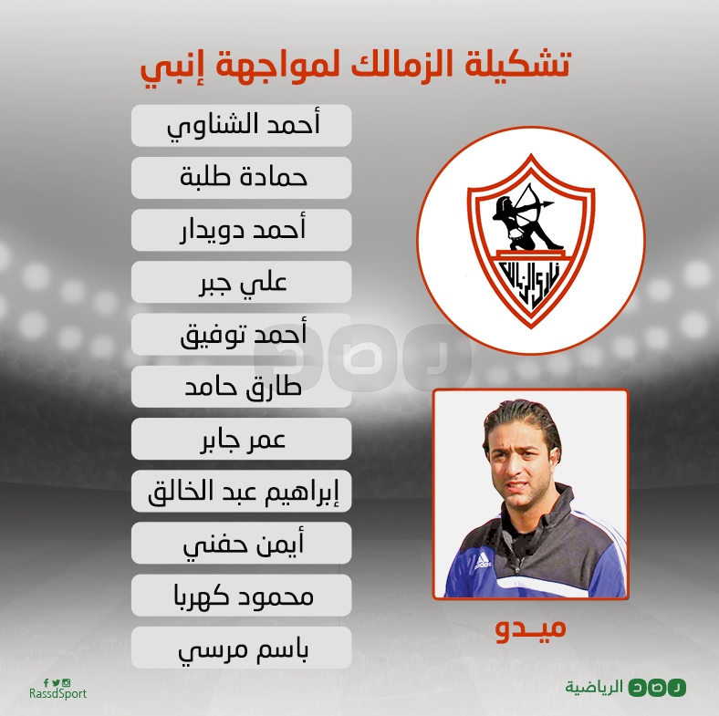 أعلن الجهاز الفني لفريق الزمالك بقيادة أحمد حسام “ميدو” تشكيلة الفريق التي من المقرر أن تخوض مواجهة إنبي في الجولة الـ11 من الدوري المصري الممتاز.