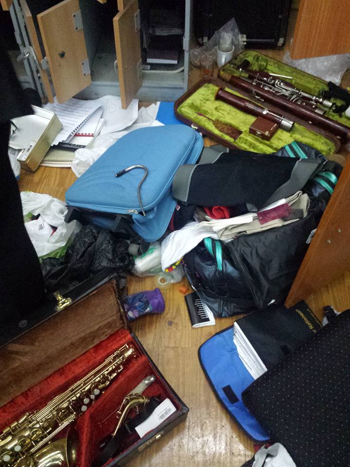 لم تسلم دار الأوبرا المصرية من بطش رجال السيسي، إذ أوردت عازفة “الهارب” الشهيرة منال محيي الدين عبر صفحتها الشخصية على موقع التواصل الاجتماعي “فيس بوك”، اليوم السبت، مجموعة من الصور التي توضح قيام الحرس الخاص لعبدالفتاح السيسي، بإلقاء كل محتويات إحدى الغرف من آلات موسيقية وأوراق وملابس في غرفة التدريب الخاصة بالعازفين والفرق الموسيقية ضمن إجراءات تفتيش المكان قبل زيارة السيسي لدار الأوبرا المصرية، لإلقاء كلمة بمناسبة احتفالية يوم الشباب.