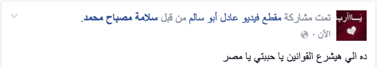 وسخر سلامة مصباح محمد: “ده اللي هيشرع القوانين يا حبيبتي يا مصر”.