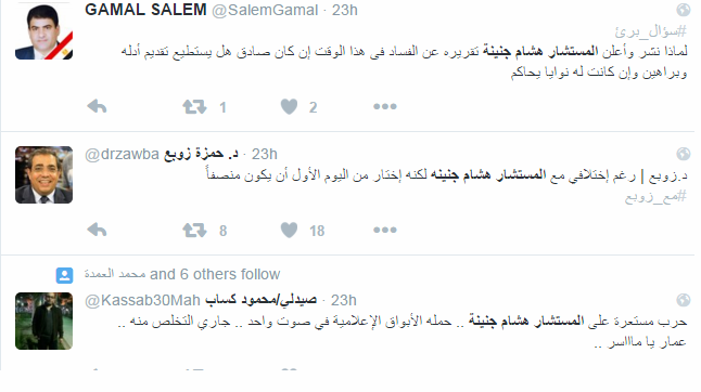 دشن رواد موقع التواصل الاجتماعي “تويتر” هاشتاجا تحت عنوان “هشام جنينة”؛ وذلك عقب اتهام لجنة تقصي الحقائق له بالتضليل.