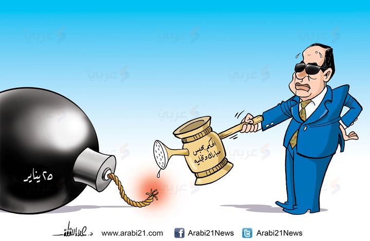 وعن محاولات السيسي إخماد فتيل الثورة نشر موقع “عربي 21” هذا الرسم: