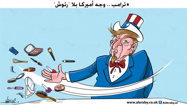 ونشر موقع “العربي الجديد” هذا الرسم عن ترامب أنه هو حقيقة أميركا: