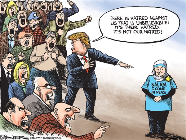 فنشر موقع “كاجل” هذا الرسم ساخرا من تحريض المرشح الأميركي دونالد ترامب ضد الإسلام: