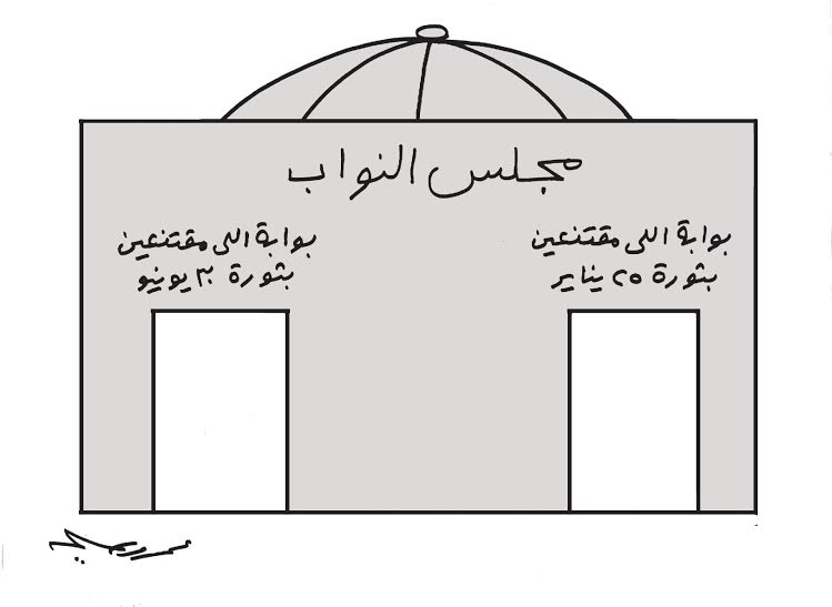 ونشر موقع “المصري اليوم” هذا الرسم بعد انقسام برلمان السيسي بين مؤيد ومعارض لثورة 25 يناير: