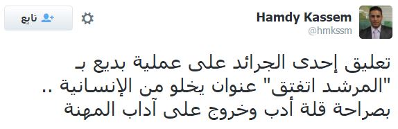 ووصف حمدي قاسم مانشت الأخبار بأنه “عنوان يخلو من الإنسانية”