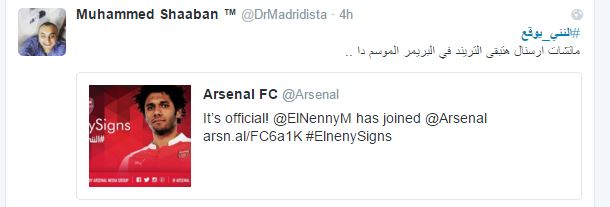 تصدر هاشتاج “النني يوقع” موقع التواصل الاجتماعي “تويتر”، خلال الساعات القليلة الماضية، بعدما أنهى الدولي المصري محمد النني، إجراءات انضمامه إلى فريق أرسنال الإنجليزي.