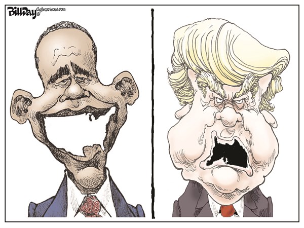 ونشر موقع “بولتيكال كارتونز” مقارنة بين تصريحات أوباما وتصريحات دونالد ترامب وجاءت كالآتي: