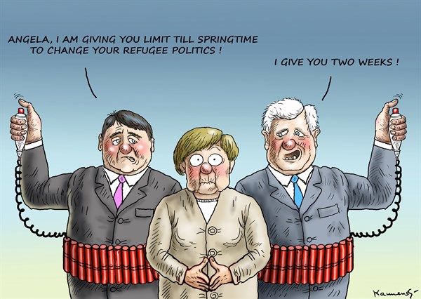 كما سخر موقع “بولتيكال كارتونز” من استقبال المانيا للاجئين عرب بهذا الرسم: