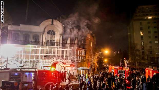 وبلغ التوتر السعودي – الإيراني ذروته باتخاذ السعودية قرار قطع العلاقات الدبلوماسية مع إيران في 3 يناير ردًا على مهاجمة سفارتها في طهران وقنصليتها في مشهد وإحراقهما.
