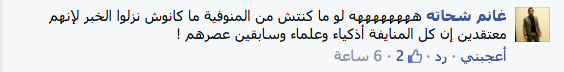وشارك غانم شحاتة بقوله: “لو ما كنتش من المنوفية ما كانوش نزلوا الخبر لأنهم معتقدين إن كل المنايفة أذكياء وعلماء وسابقين عصرهم!”.