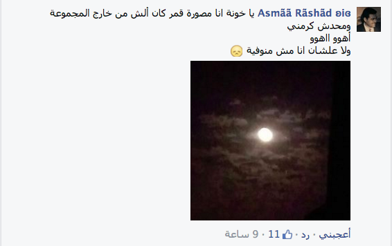 وقالت أسماء رشاد: “يا خونة أنا مصورة قمر كا آلش من خارج المجموعة وماحدش كرمني ولا علشان أنا مش من المنوفية”.
