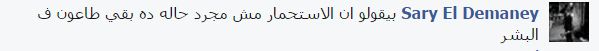 Sary El Demaney-: “بيقولوا إن الاستحمار مش مجرد حالة ده بقى طاعون في البشر”.