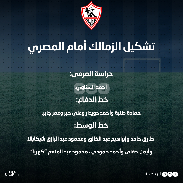 وجاءت التشكيلة خالية من وجود أي مهاجم صريح؛ حيث سيكون تشكيل الزمالك في المباراة كالآتي: