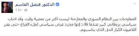 القاسم: المفاوضات بين النظام السوري والمعارضة ليست أكثر من تمضية وقت