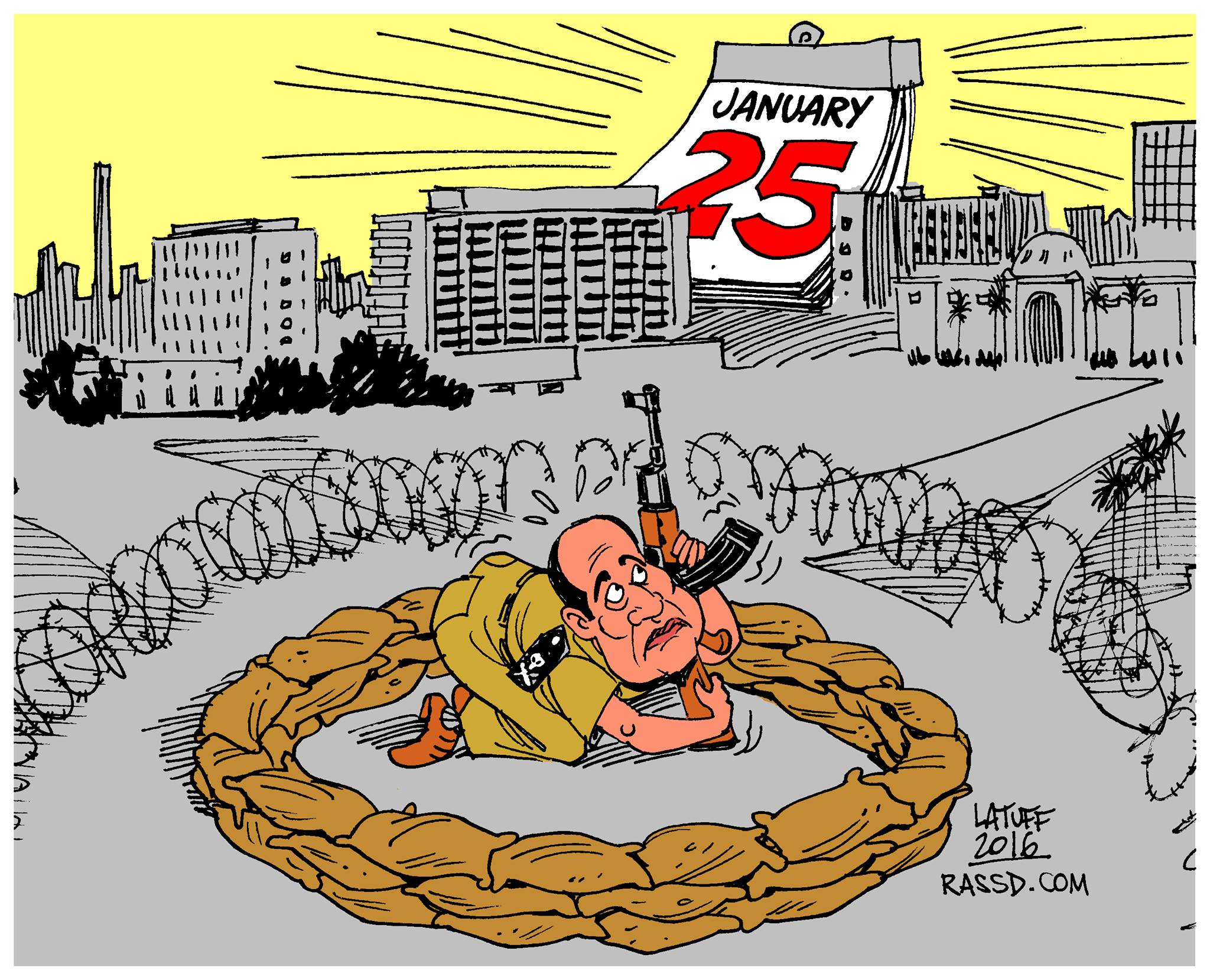 وقدم الرسام العالمي كارلوس لاتوف رسما خاصا لـ”رصد” عن فزع السيسي من ذكرى ثورة يناير المقبلة: