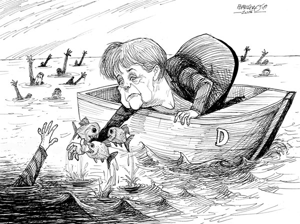 وسخر “كاجل” من استقبال ألمانيا للاجئين عرب بهذا الرسم: