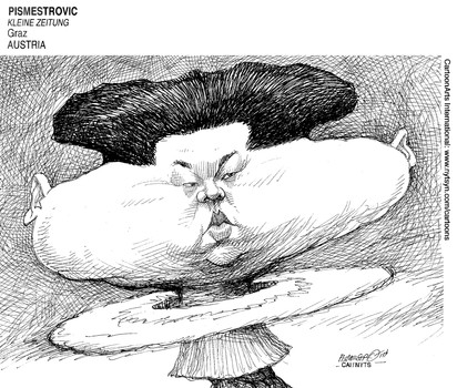 ونشرت صحيفة “نيويورك تايمز” هذا الرسم ساخرة من القنبلة الكورية التي أجري عليها تجربة إطلاق خلال الفترة الماضية كنوع من التهديد للدول الكبرى.