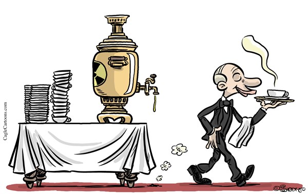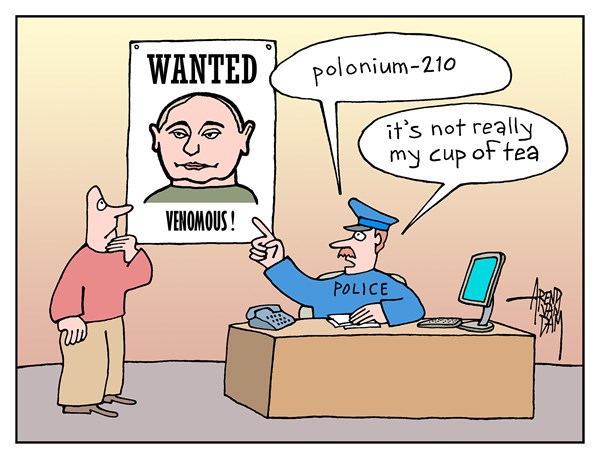 أما عن تورط بوتين في وضع سم لأحد عملاء روسيا السابقين نشر موقع “بولتيكال كارتونز” هذا الرسم:
