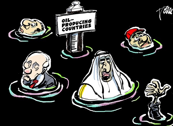 وقدم موقع “بولتيكال كارتونز” هذا الرسم عن أزمة البترول العالمية: