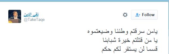 تقي الدين: يا من سرقتم وطننا وضيعتموه، يا من قتلتم خيرة شبابنا، قسما لن يستقر لكم حكم