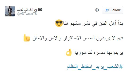 إﻣاراتي: بدأ أهل الفتن في نشر سمّهم هنا، فهم لا يريدون لمصر الاستقرار والأمن والأمان، يريدونها مدمرة كسوريا