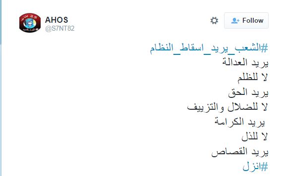 AHOS: الشعب يريد العدالة.. لا للظلم، يريد الحق لا للضلال والتزييف، يريد الكرامة لا للذل، يريد القصاص.. انزل