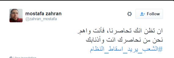 mostafa zahran: إن تظن أنك تحاصرنا، فأنت واهم.. نحن من نحاصرك أنت وأذنابك