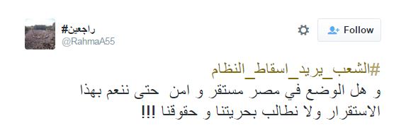 RahmaA: وهل الوضع في مصر مستقر وآمن حتى ننعم بهذا الاستقرار ولا نطالب بحريتنا وحقوقنا!!