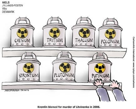 كما سخر موقع “بولتيكال كارتونز” من اتهامات بوتين بتسميم عميل روسي سابق بهذا الرسم: