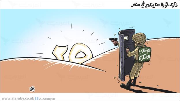 وعن ذكرى ثورة 25 يناير والرعب الذي يعيشه نظام السيسي قدم موقع “العربي الجديد” هذا الرسم: