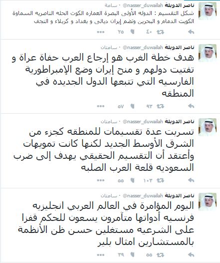 وقال -عبر عدة تغريدات على “تويتر”-: “الأيام ستعلم حكوماتنا أنها ضحية ثعلب خبيث متآمر وهو أخطر على الأنظمة الخليجية من الصخل الأسود أوباما.. هو يدخل كل القصور ويتآمر على الأنظمة”.