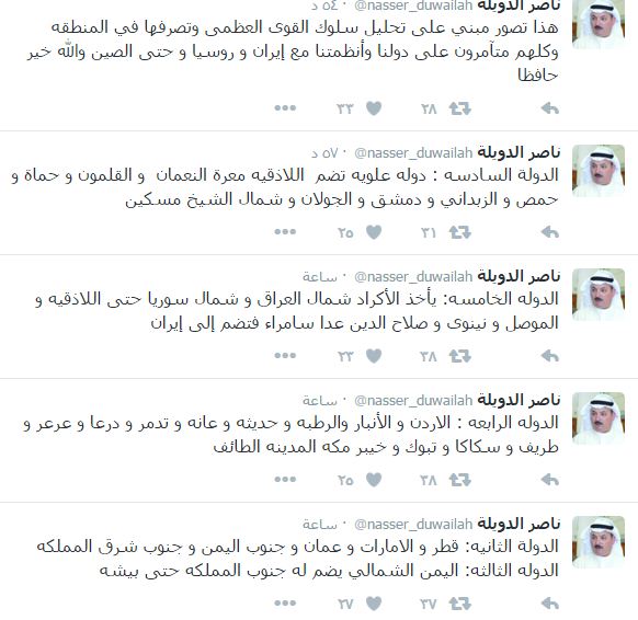 وأضاف “تسربت عدة تقسيمات للمنطقة كجزء من الشرق الأوسط الجديد لكنها كانت تمويهات، وأعتقد أن التقسيم الحقيقي يهدف إلى ضرب السعودية قلعة العرب الصلبة”.