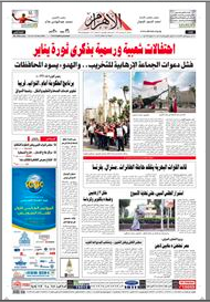 جريدة الأهرام، الجريدة القومية الأشهر في مصر ولسان حال النظام، فجاء عنوانها: “احتفالات شعبية ورسمية بذكرى ثورة يناير”.