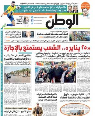 ونشرت جريدة الوطن “مانشيت” رئيسيًا بعنوان “25 يناير.. الشعب يستمتع بالإجازة، كما جاءت أخبار الجريدة الورقية: “العشرات في التحرير يوزعون الورود على الشرطة”، إضافة إلى “الإخوان يحتفلون بالمولوتوف”.