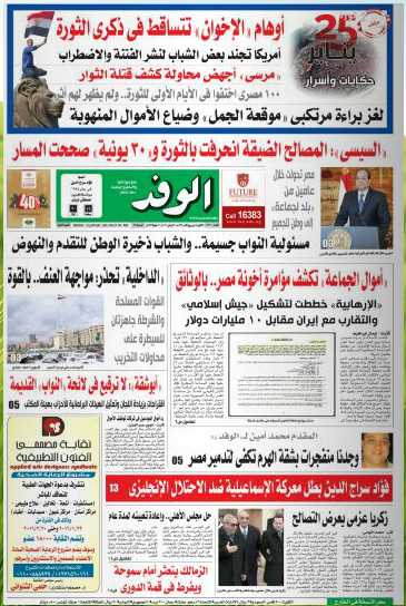 جريدة الوفد لسان حال حزب الوفد المصري الذي يرأسه رجل الأعمال السيد البدوي كتبت: “أوهام الإخوان تتساقط في ذكرى الثورة”، كما وصلت إلى اتهام أميركا بتجنيد بعض الشباب لنشر الفتنة والاضطراب.