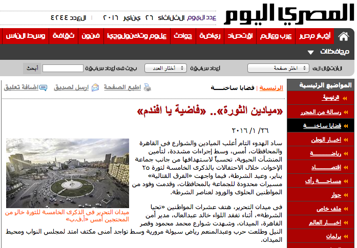 ونشر الموقع كواليس ما أسماه الاحتفال بالذكرى الخامسة لثورة 25 يناير، وعدم استجابة المواطنين لدعوات تنظيم الإخوان بالتظاهر في ذكرى الثورة، وإبراز احتفال المواطنين بذكرى الثورة وعيد الشرطة معا، بتبادل الورود والشيكولاتة، في حين نجحت قوات الأمن في إجهاض مخططات الجماعة بتعكير صفو الاحتفالات.
