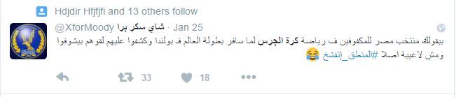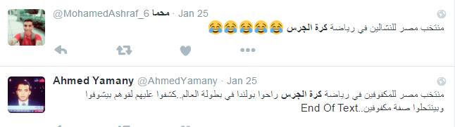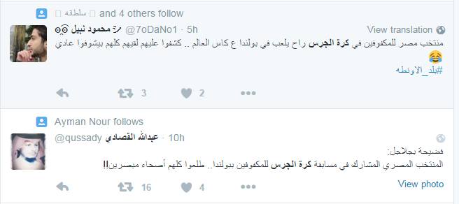 أثارت فضيحة منتخب مصر لكرة الجرس، جدلا في الأوساط الرياضية وانهالت التدوينات الساخرة على هذه الواقعة بموقع التدوين الاجتماعي "تويتر"