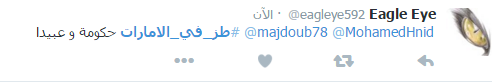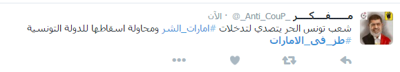 وهاجم النشطاء شيوخ الإمارات زاعمين أن لهم دورا كبيرا في تأجيج الأوضاع الداخلية في تونس وغيرها من بلدان الربيع العربي واندفاعها الجنوني لخلق بؤر توتر وعدم استقرار في هذه البلدان إضافة إلى خلق أحزاب وشركات سياسية وتمويلها لتنفيذ أجنداتها المعادية للثورات العربية عامة والإسلاميين خاصة.