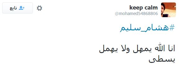 وكان سليم قد طالب أمس، بمعاقبة الشاب أحمد مالك، بغسيل دورات المياه في الأقسام، مما أثار حفيظة نشطاء مواقع التواصل الاجتماعي، وجاءت تعليقات الرواد تسخر مما حدث لهشام سليم، والتأكيد على أن الله سبحانه وتعالى يمهل ولا يهمل.