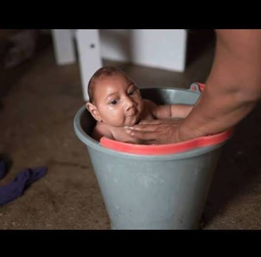 – صورة لطفل مصاب بالصعل بعد الإصابة بفيروس زيكا