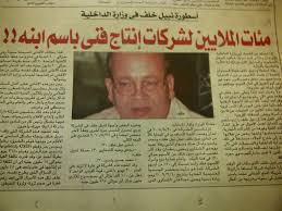 (8) ذكر تقرير الأهرام أن استثمارات العادلي مسؤول عنها كل من اللواء جهاد يوسف مساعد الوزير للشؤون المالية -ويحصل على 500 ألف جنيه مقابل خدماته بالإضافة إلى راتبه- والموظف المدني نبيل خلف مدير الميزانية.