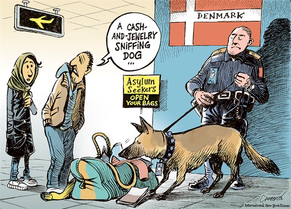وفي إطار تضييقات أوروبا على اللاجئين العرب نشر موقع “بولتيكال كارتونز” الرسم التالي: