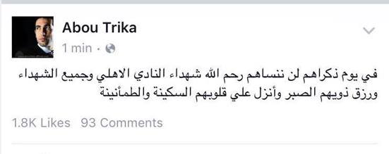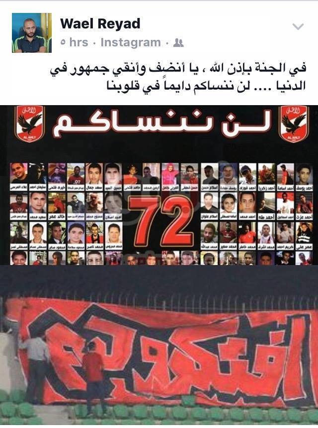 صفحة النادي الأهلي: “أربعة أعوام قد مرّت على فِراق 72 من أنبل وأوفى مشجعينا! أربعة أعوام ولم ننساكم قط.. ولن يحدث”.