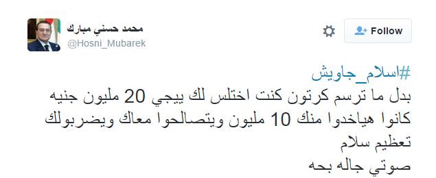 Hosni Mubarek: “بدل ما ترسم كرتون كنت اختلس لك ييجي 20 مليون جنيه، كانوا هياخدوا منك 10 مليون ويتصالحوا معاك ويضربولك تعظيم سلام”.