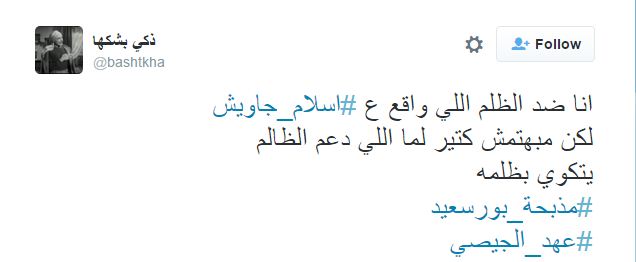 ذكي بشكها: “أنا ضد الظلم اللي واقع على إسلام جاويش لكن مبهتمش كتير لما اللي دعم الظالم، يتكوي بظلمه”.