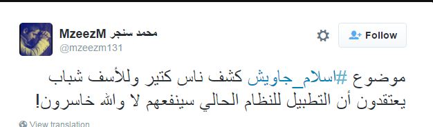 محمد سنجر: “موضوع إسلام جاويش كشف ناس كتير وللأسف شباب يعتقدون أن التطبيل للنظام الحالي سينفعهم لا والله خاسرون!”.